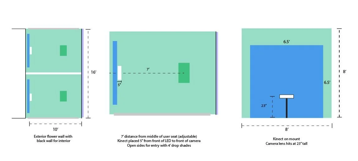 Interactive Photobooth programmed via TouchDesigner. Figure recognized via kinect camera and shown in lush environment inspired by Electric Forest's Michigan environment. Kinect reads hand motions to make flowers grow beneath the festival goer.